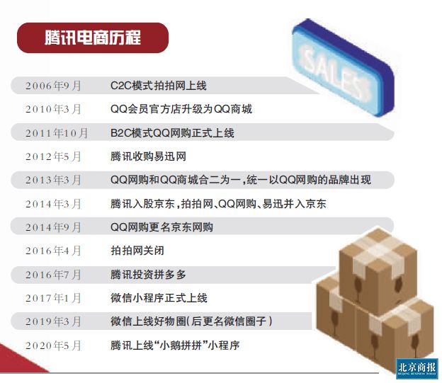 从2006年3月运营拍拍网至今,腾讯的电商业务有过高光时刻也跌过不少跟头。上线一周年时,拍拍与易趣、淘宝网是中国最有影响力的三大C2C平台。2014年腾讯投资京东,京东收购QQ网购和拍拍网,则被认为是腾讯电商断臂。
