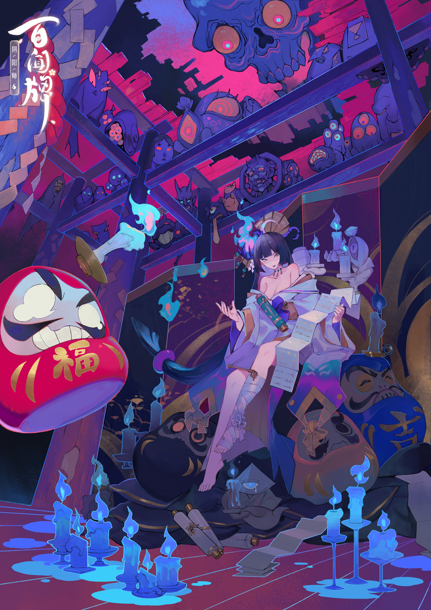 关于青行灯的实际传说形象,有着多个版本。在某些轶闻纪事里,青行灯原本是“百物语”游戏里,一盏罩着青蓝色灯罩、用以渲染恐怖氛围的灯。时日久了,这盏灯或许是听多了各色神秘莫测的故事,幻化成了一名喜欢听鬼故事的年轻女妖怪,继续四处收集着所钟爱的怪谈。