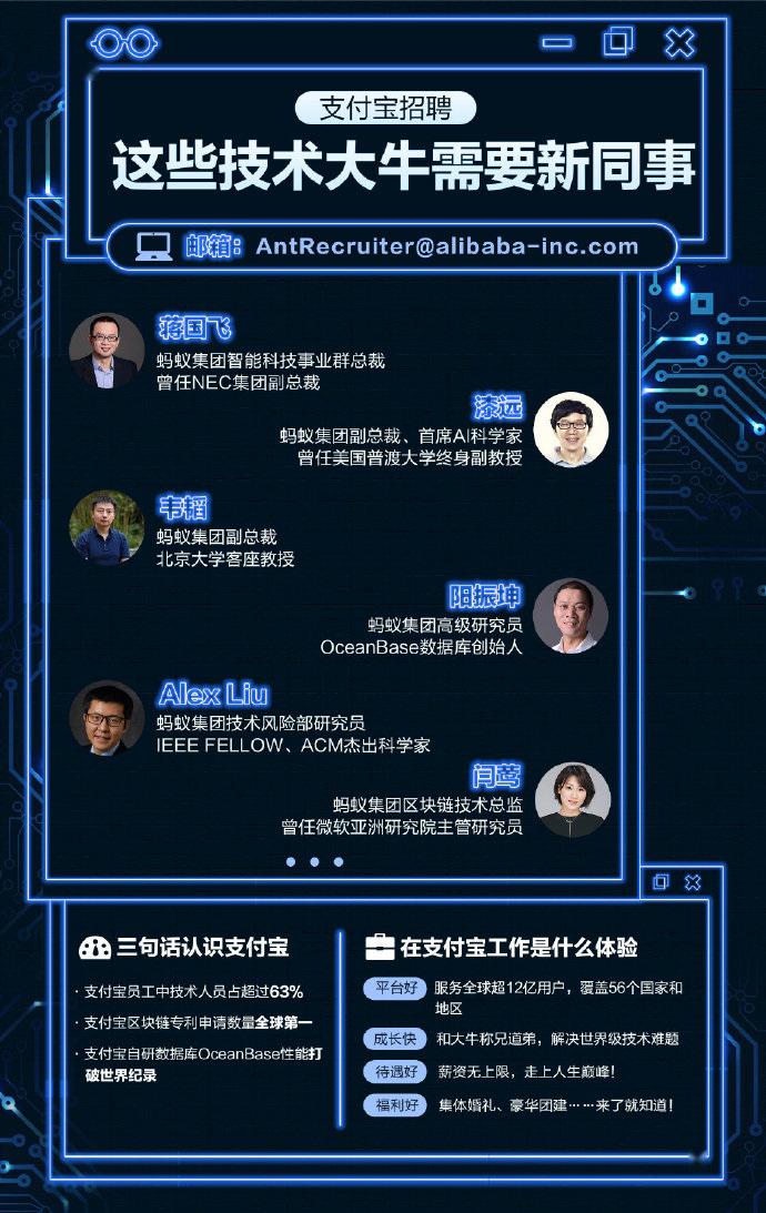 支付宝还称,支付宝区块链专利申请数量全球第一,支付宝自研数据库OceanBase性能打破世界纪录,在支付宝工作“薪资无上限”。
