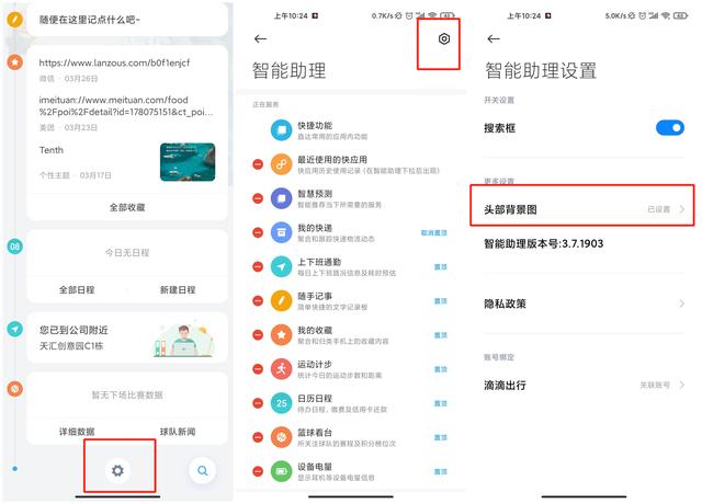 MIUI负一屏整体简洁大方,同时头部图片支持自定义,还不知道的朋友找到负一屏底部的设置按钮-右上角设置-头部背景图进行设置。