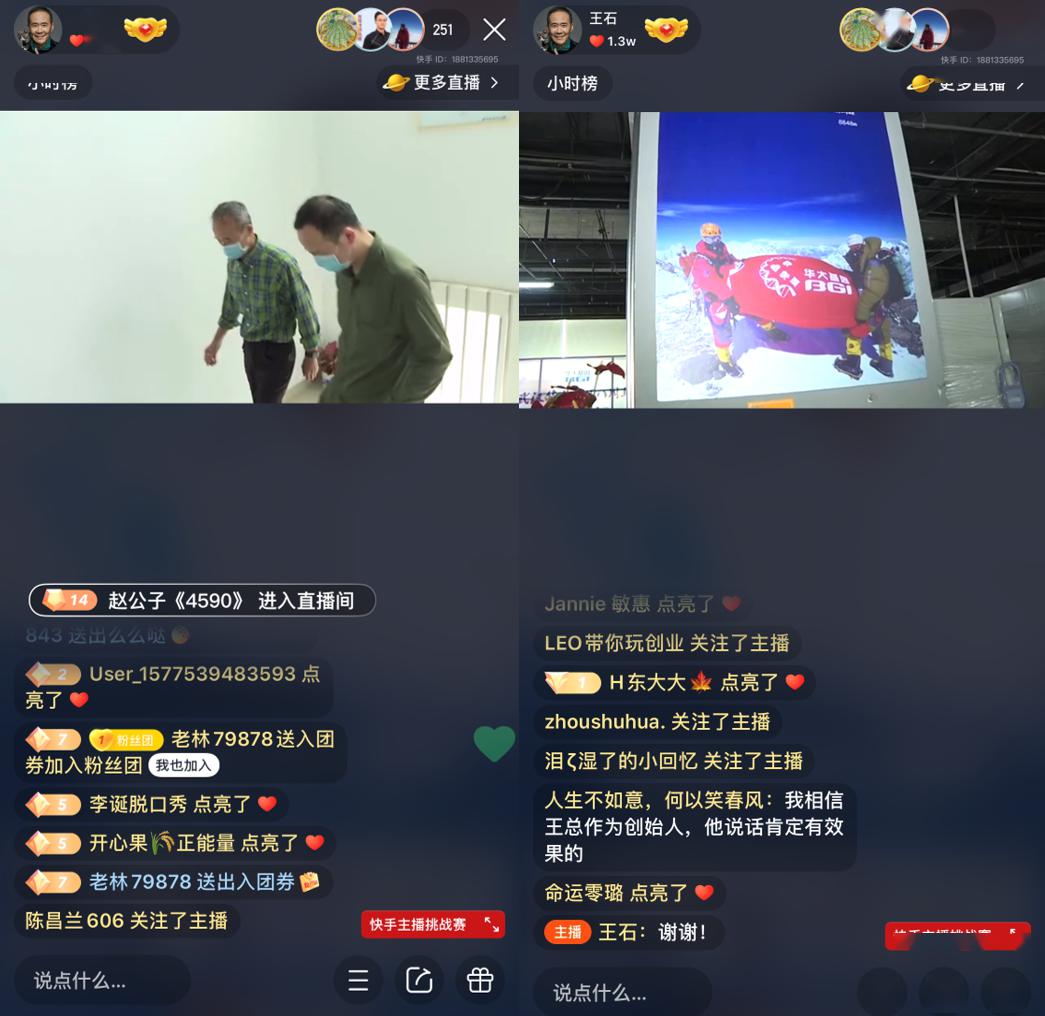酒香不怕巷子深,以直播形式进行交流互动中,让更多人了解到实验室背后的故事。也了解到王石的个人兴趣和癖好。爱运动,爱分享,和其他快手老铁一样,王石也喜欢被点赞和被欣赏。“王总”、“大佬”、“老王”、“可爱老头”……王石的称谓在快手老铁那里慢慢变得多样化。