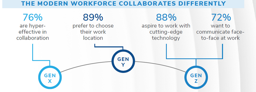 Frost & Sullivan的研究数据表明,89%的Y世代人群(80-90后)更希望可以选择灵活的工作地点,88%的Z世代人群(95后)期待使用尖端科技来提升工作表现。所以,企业需要找到新的工作模式,使团队之间可以更加紧密地协作,从而提高生产力,并为满足未来的员工需求而提前做好准备。
