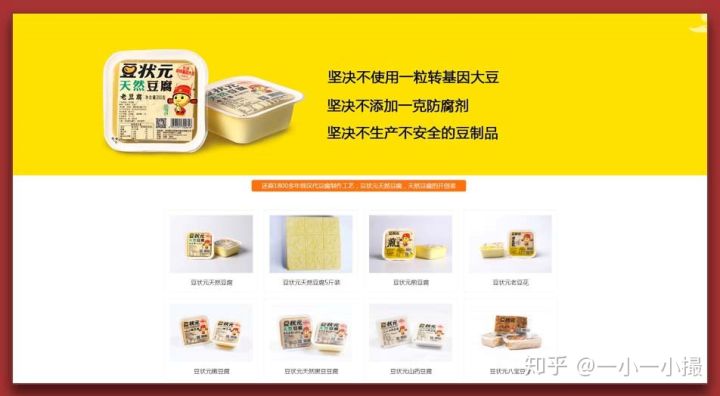 河南有一位“豆腐哥”,经营着一家企业叫豆状元。从黄豆到豆腐,从豆腐到豆制品,豆状元以“天然”为品牌诉求,坚持4年战略聚焦,国内第一个没有添加剂的豆腐在河南,在郑州,在豆状元出现了。小突破,大进步,解决了豆腐产业的标准化和工业化。把豆制品从安全层面提升到了健康层面。成为巴奴、海底捞、阿五黄河大鲤鱼等1400多家高端餐饮指定供应商,并围绕天然无添加,将豆制品的品类价值向不同的场景渗透,从豆腐到豆干到豆腐丸子,从非标到标品,逐步实现对家庭餐桌的包围。