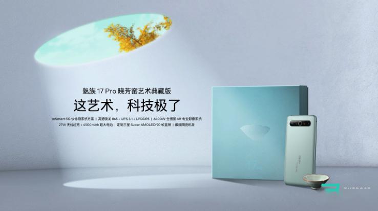 除了普通版本外,魅族 17 Pro 有晓芳窑艺术典藏版,限量 50 套。该系列在魅族 17 Pro 的陶瓷机身上实现了天青配色,随手机配送一只晓芳窑汝窑葵口盏杯,该限量版售价为 9999 元,将于 5 月 25 日 10:00 在魅族商城、魅族天猫、京东官方旗舰店正式开售。