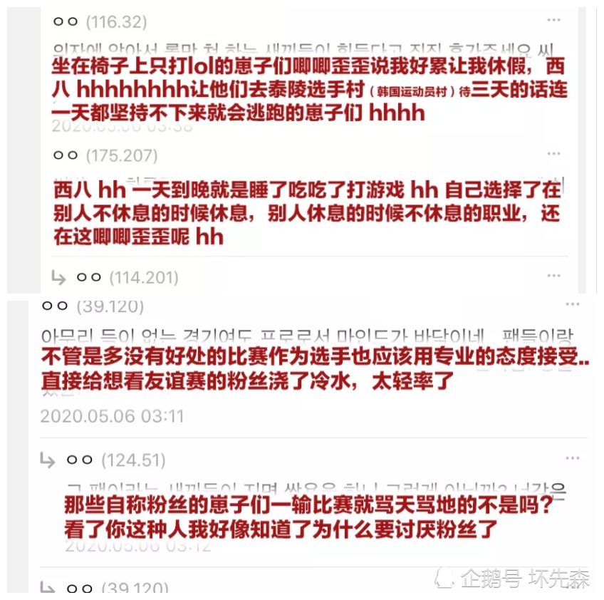 随后有韩国玩家认为占用了休息时间确实是LCK的不对,但他们还是想看到友谊赛开启,毕竟休赛期实在太无聊了。大部分LCK粉丝认为Doinb和Zoom的回应有些欠妥,毕竟LCK的粉丝们似乎非常期待这次友谊赛。连续两年被LPL压制的他们迫切需要一场胜利来帮助自己找回自信,还有部分激进粉丝将LOL与运动做对比,表示他们只是“敲敲键盘”,看得出LCK对于LOL选手似乎有不小的歧视。