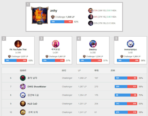 截止5月8日,RNG战队的中单小虎和打野小龙堡两个人联手进入了韩服前五名,其中小虎榜首、小龙堡第五,虽然这个位置随时都可能变,但他们的游戏状态却不会有太大变化。