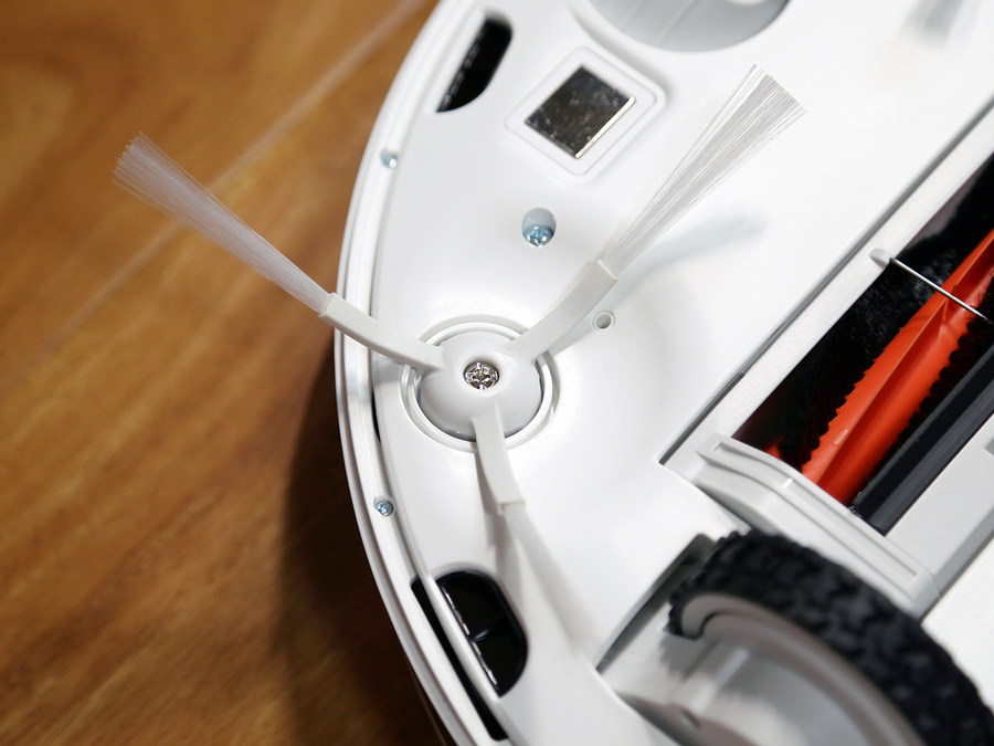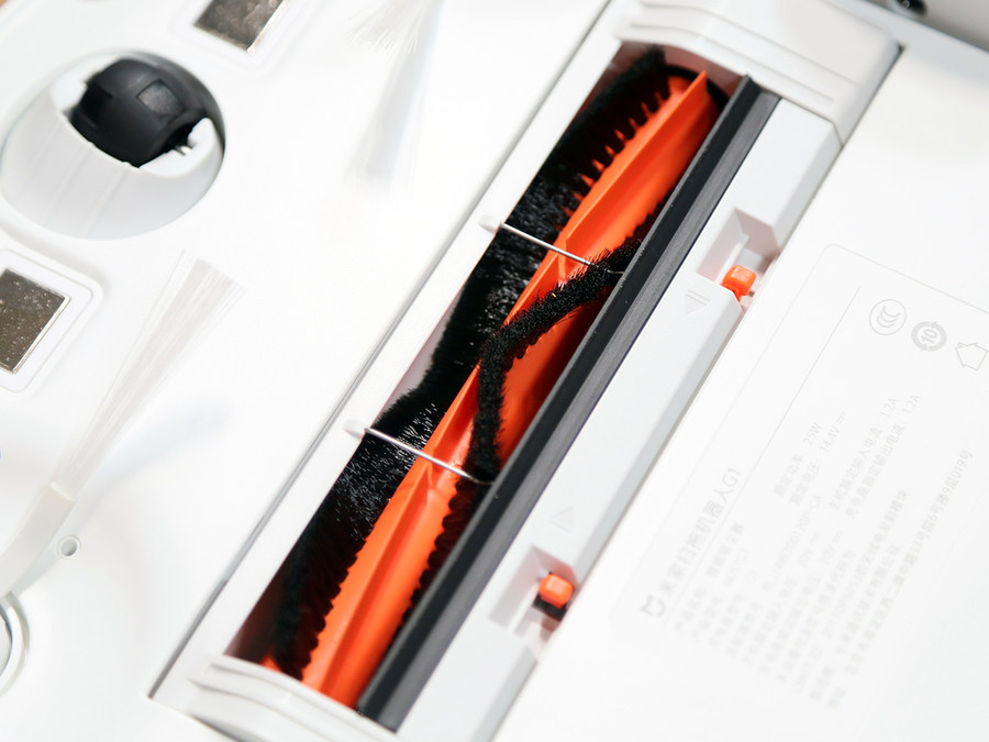 米家扫拖机器人G1配备了两个毛刷,用于清洁墙壁边缘。在日常清扫中,两个毛刷可以将脏物聚拢在一起,方便吸入。