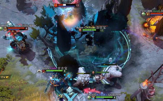 首局比赛,茶队的三个大哥都是偏发育的英雄——军体拳的TB、阿铨的龙骑士和XXS的钢背兽,酱油则是萨尔和光法。另一边,EHOME则是拿出了赛老师的巨魔、NTS的DP和小明鞭的死灵龙,酱油是牛头和墨客。就个人看来,明显是EHOME的阵容更加饱满。顺便一提,为了打钢背兽,死灵龙不走寻常路,早早地出了一个大隐刀。对线期,EHOEM在三条路上都表现的非常强势,取得了四比零的完美开局。而由于茶队的英雄实在是没有节奏能力,导致人头比不断扩大——五比零、六比零、七比零。终于到了八分钟,茶队才拿下了第一个人头。