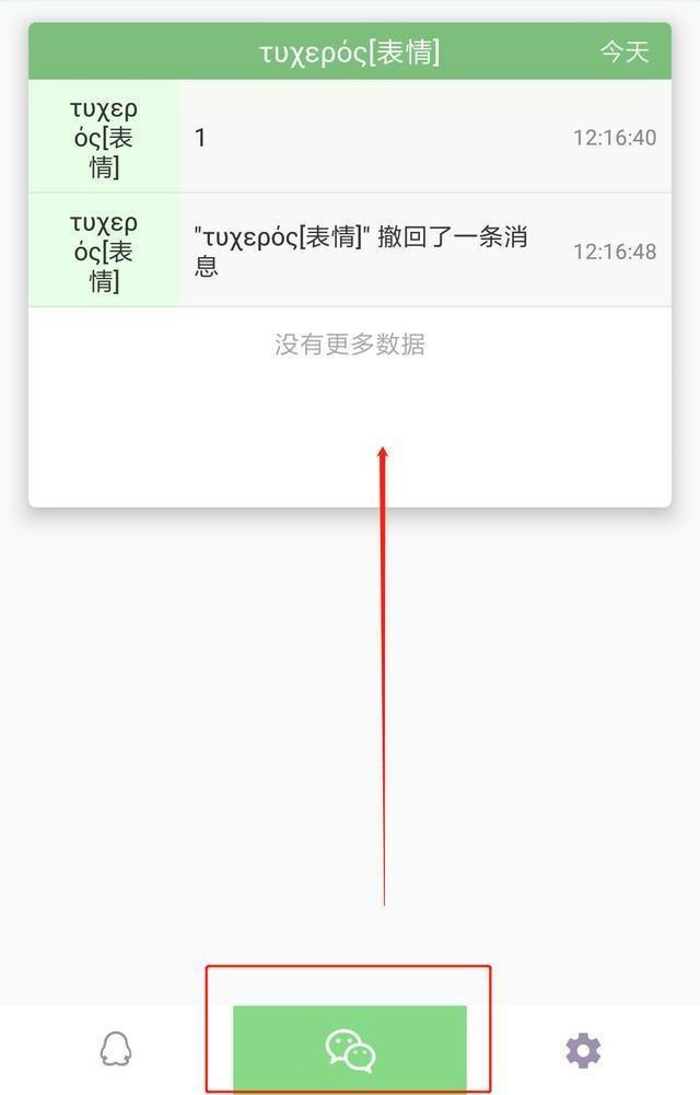 完成之后你就可以使用了,可以先实验一下,用好友的手机给自己发一条消息然后马上撤回。消息果然会看不见,别急打开这个神器之后,然后点击下方微信图标,刚刚被撤回的消息就显示出来啦!(如果只显示"某某撤回一条消息",只需要再点击一下就可以看到了)