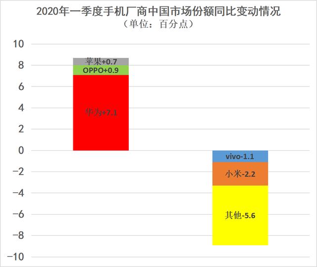 而从中国市场来看,结果则是大相径庭。华为攻势凌厉,竟然增加了1.7个百分点的市场份额,OPPO和苹果的市场份额也略有增长。
