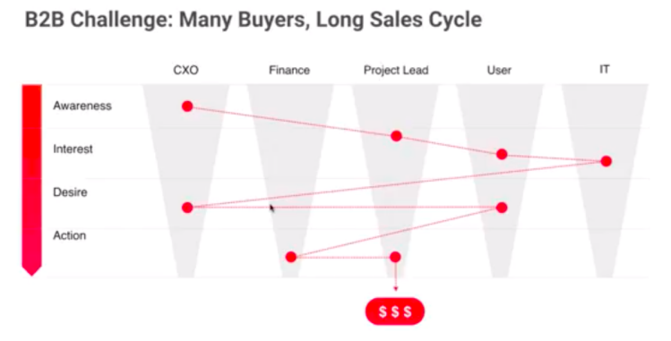 B2B销售的特性决定了决策的复杂性。尤其是大客户销售时,来来回回几个月甚至几年,写方案,做关系,前期后后要见好多人。