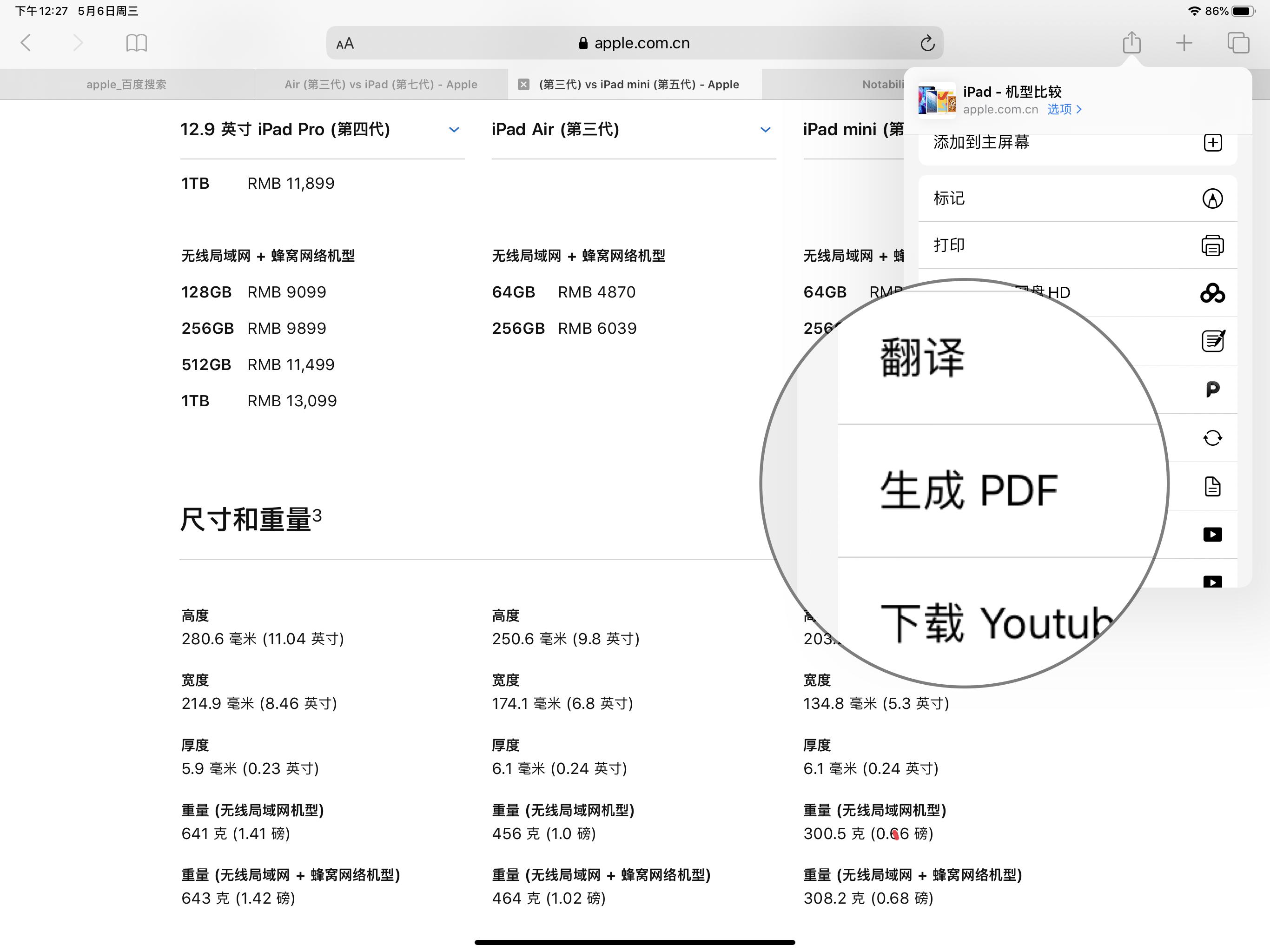 如果你在网页中遇到很多非常有用的知识,其实截图保存是很傻的一种方式。在 Safari 中,其实可以直接把网页直接整个保存为一个 PDF 文件,然后这个 PDF 文件就可以导入到笔记中进行学习。
