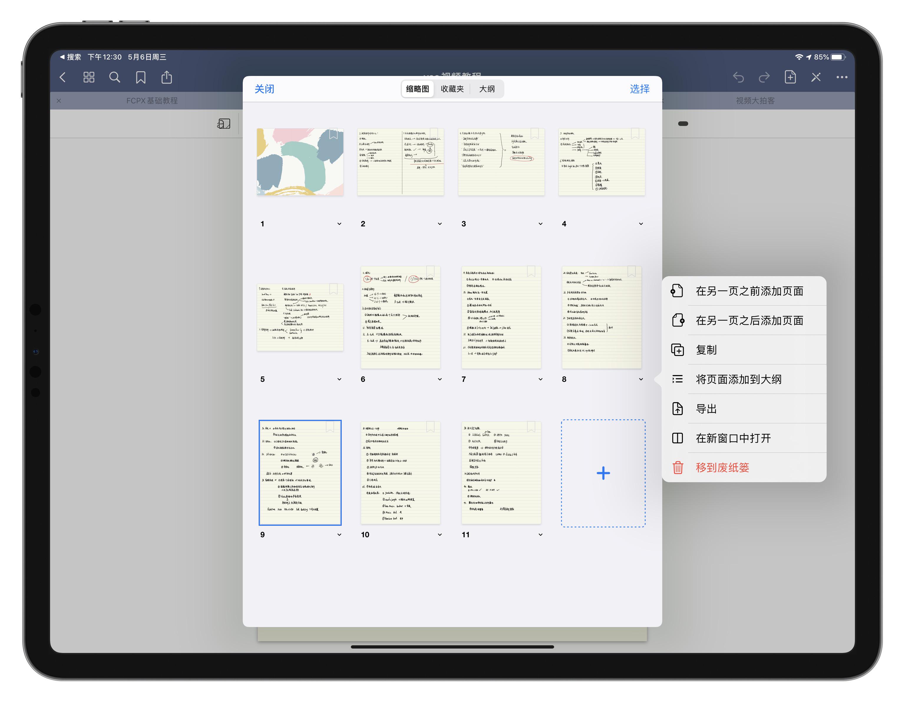 在 GoodNotes 5 中,我们可以对于完成的笔记进行充分的整理。这其中缩略图有着非常重要的作用。