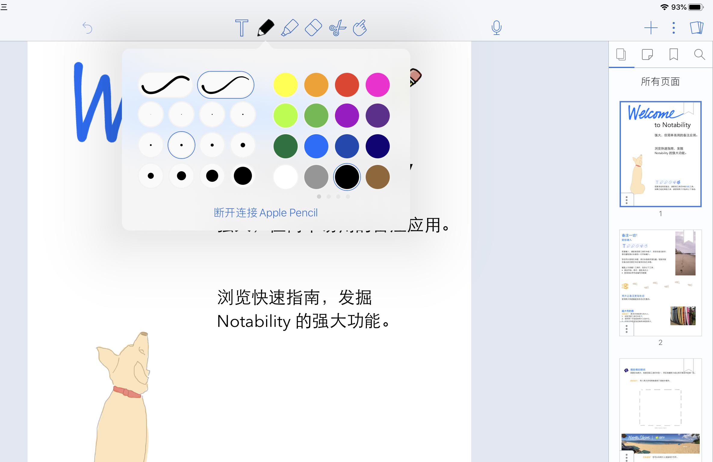 但是在切换不同的笔迹时 GoodNotes 5 大部分操作在一级菜单中就可以切换,而 Notability 需要点击切换。