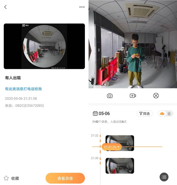 另外,通过手机端App,可以随时随地查看门外的情况,也可以对当前画面进行截图、录制以及语音通话等。