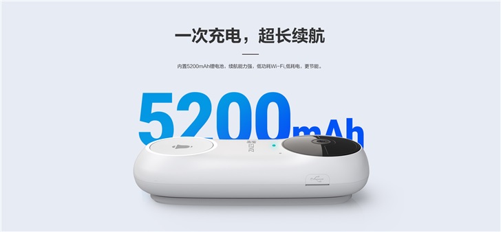 首先,门铃主机内置5200mAh锂电池,这意味着不用再单独买干电池供电了。短期内看可能干电池的性价比更高,当长期考虑肯定是能反复充电的锂电池使用成本更低一些。同时大电池容量也为门铃提供了相当强的续航能力,笔者目前只体验了一小段时间,并不能估计这款门铃的具体续航表现如何,但市面上大部分同类产品的续航时间都长达半年之久,相信这款门铃也会有不错的表现。