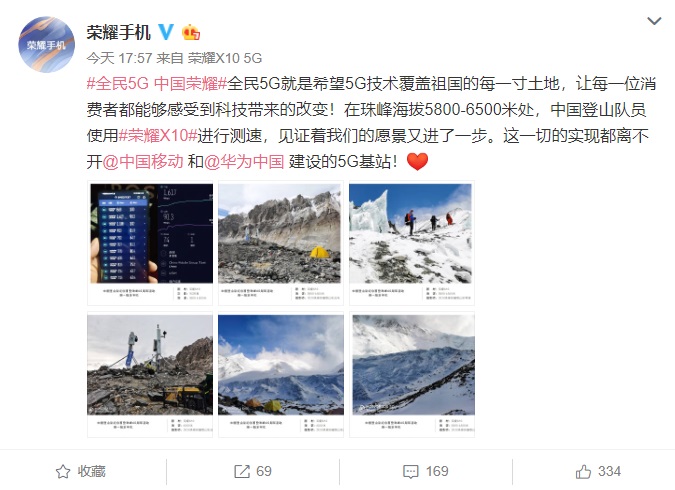 根据荣耀手机官方微博的消息,在珠峰海拔5800-6500米处,中国登山队员使用了荣耀X10进行测速,荣耀X10真机正面照也公布了,从图片上来看应该是采用了弹出式摄像头,而且边框也非常窄。
