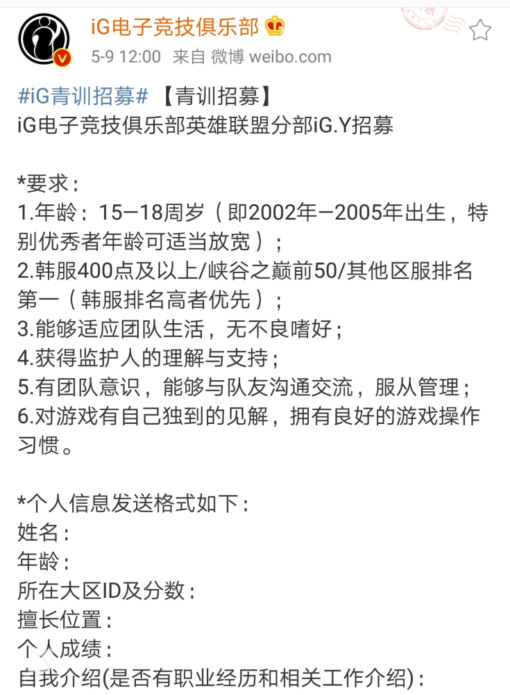 官宣IG青训开始招募了,有机会和Shy哥并肩作战