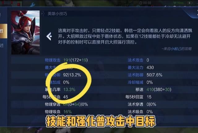 先来了解下韩信的被动:技能和强化普攻击中目标,都能增加百分之60的功速,持续两秒左右。要注意的是,二技能就算没击中单位,也可以获得功速的加成。