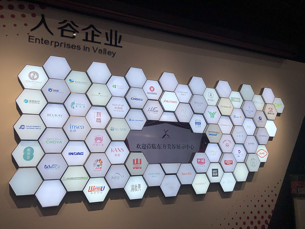 入驻东方美谷的企业品牌。 澎湃新闻记者 陈伊萍 图