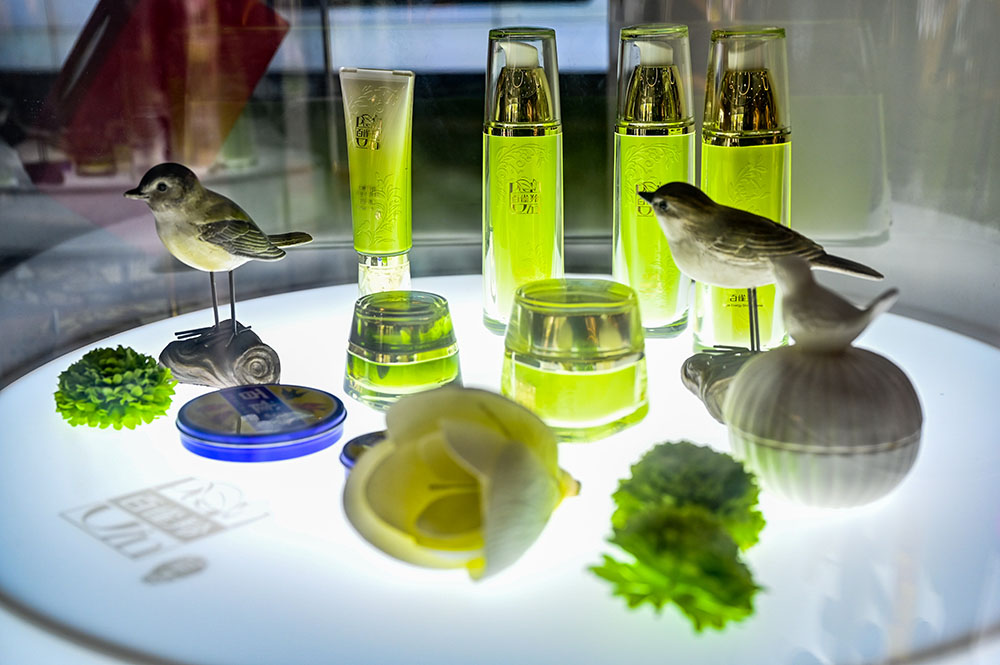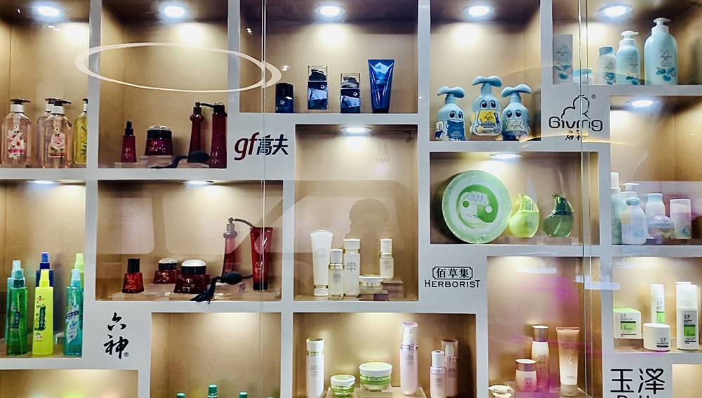 入驻东方美谷的上海家化品牌产品展示。澎湃新闻记者 张呈君 图
