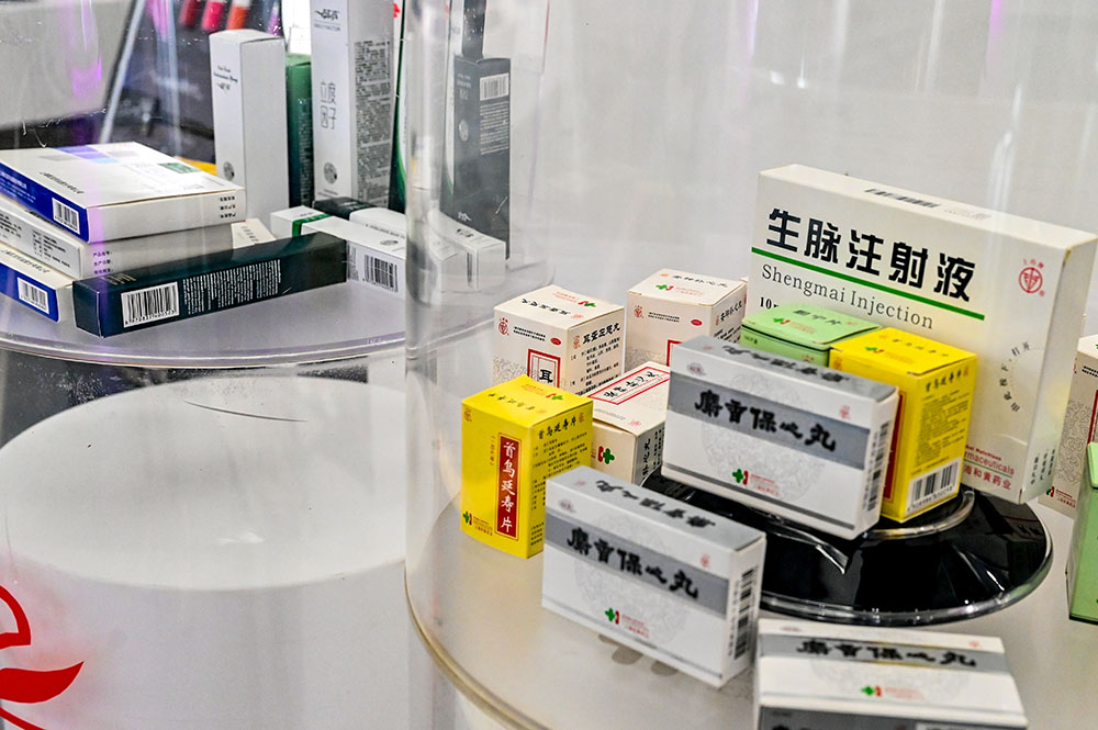 入驻东方美谷的生物医药企业产品展示。 澎湃新闻记者 张呈君 图