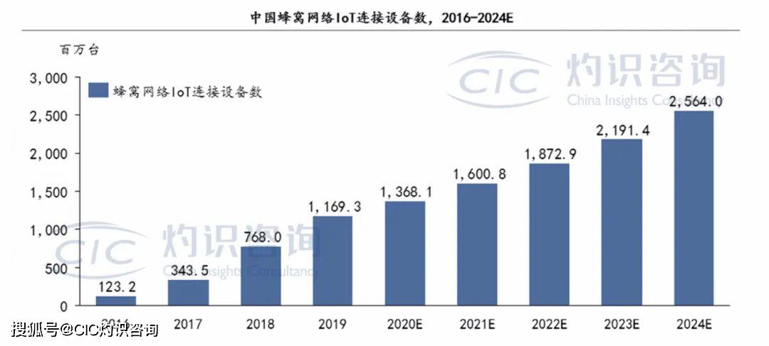 同时,5G每平方公里允许一百万个连接,实现了虚拟网络空间与真实物理世界的连接,即人和物互联、物和物互联。2019年,中国共有蜂窝网络IoT连接设备11.7亿台,这一数字预计在2024年高速增长至25.6亿台。