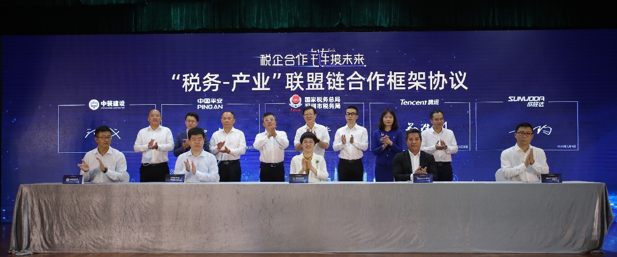 5月9日,深圳市税务局与腾讯等四家企业联合签署协议,共同打造“税务-产业”联盟链。企业、金融机构和税务机关通过联盟链上信息互通,实现链上税务服务、融资服务,支持中小企业持续发展。签约现场还发布了通过联盟链服务中小微企业的十项措施,实现企业“链上办税”。