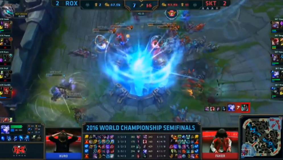 首先是S6 SKT对阵ROX的比赛,虽然当时只是半决赛,但这两支队伍,无疑就是当年实力最强大的两支队伍,那个时候的ROX是真的很励志,连赞助商都没了,就靠着兄弟之间的情谊来打这场世界赛,还记得刚出道的小花生是多么的意气风发。当然,作为最后冠军的SKT也是非常强大,那个BO5双方拉满了之后,其实谁输谁赢双方的粉丝都不觉得可惜了。
