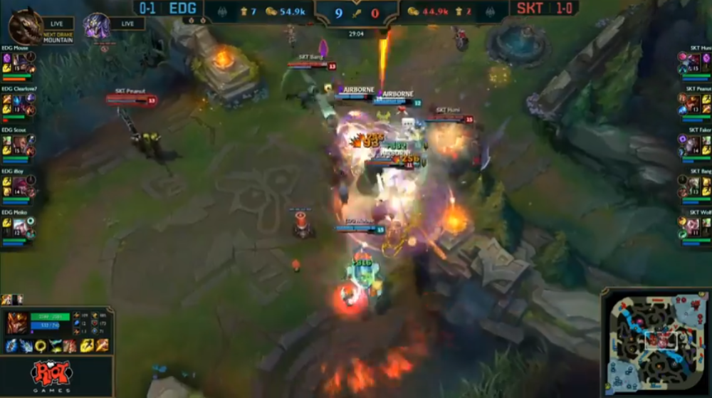 其次是S7 EDG对阵SKT的比赛了。说起EDG最惨的一场比赛,大家就会想起一万经济、中路、洛这三个关键词。但换个角度来看,SKT的绝地翻盘,确实是经典中的经典,换做其他队伍,在EDG领先1万的情况下,很可能连高地都不敢出,守高地拖发育在算。但SKT就抓住了仅有的一次短暂的机会,成功翻盘了EDG,让这场比赛在LOL历史上划上了精彩的一笔。