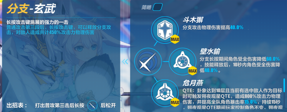 当然,作为一个新的SP角色,各位舰长舰长肯定还会关心观星的SP技能是什么。观星的SP技能是关于分支攻击的效果加强方面的强化,初始的观星SP技能在分支攻击长按期间在角色身上出现闪光提示时松开攻击键时触发,额外回复能量并且对敌人造成伤害。在升至S后,分支攻击完美释放击中敌人是,提升自身的全伤害;在升至SS后,分支攻击完美释放击中敌人时,眩晕敌人;在升至SSS后,分支攻击完美释放时额外回复能量。