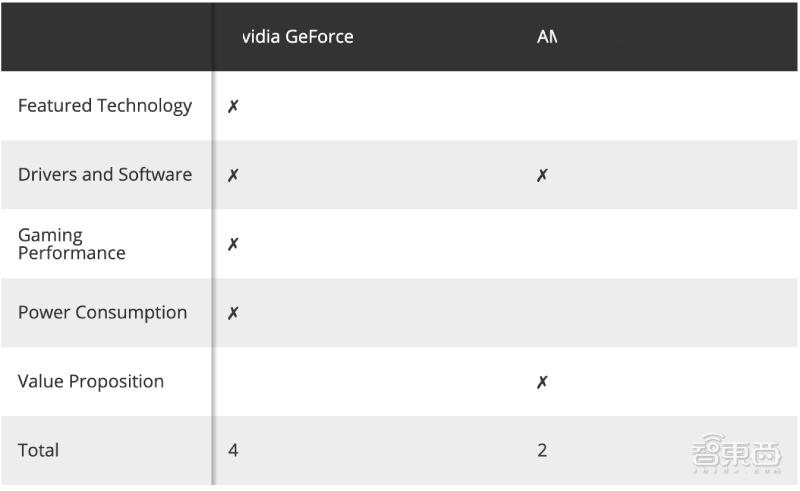 Tom’s Hardware从游戏性能、能耗、特色功能、驱动程序和软件、定价这5个方面比较了AMD和NVIDIA的GPU产品。结果显示NVIDIA在大部分方面领先,但AMD占据价格优势。