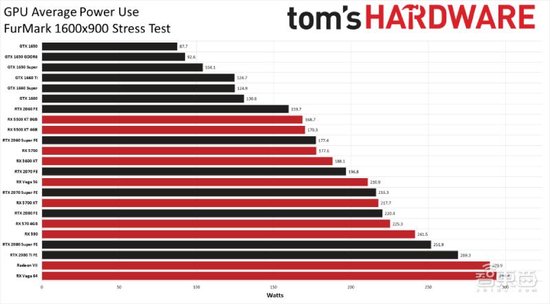 对于入门级GPU,AMD的RX 570 4GB售价120美元(约851元),RX 5500 XT 4GB约比RX 570 4GB快25%、能耗低一半、售价高33%。NVIDIA的GTX 1660 Super比AMD的RX 5500 XT 8GB快20%,价格高28%。考虑到GTX 1660 Super性能提升较大,测试人员认为AMD和NVIDIA在入门级GPU的价格战中打成平手。