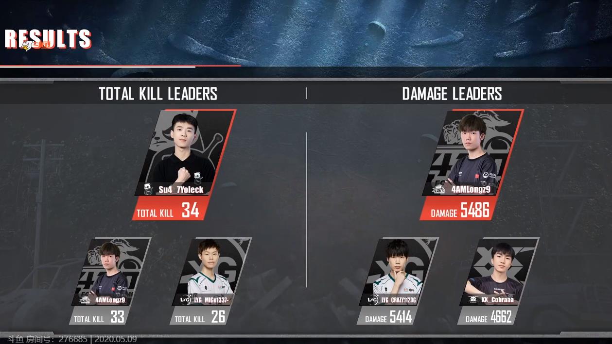 下面是黄金大奖赛的淘汰榜和伤害榜。淘汰榜方面,SU4的7Yoleck拿到了第一名,而4AM的Longz排名第二,两人只差了1个淘汰。伤害榜方面,4AM的Longz排名第一,LYG和KX的选手也上榜。所以说,4AM的Long在本次斗鱼黄金大奖赛,包揽2个榜单。不得不说,韦神在选人方面,还是很有远见的。