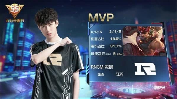 本局比赛MVP给到了RNGM.凉晨的廉颇!游戏网