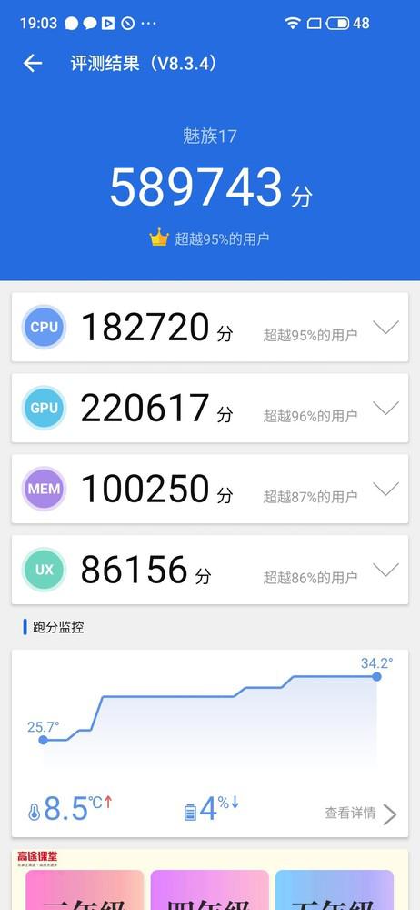事实上,魅族17的基础硬件性能已经能够满足绝大多数的使用场景。高通骁龙865、UFS 3.1等旗舰级硬件的加持,为魅族17的体验打下了坚实的基础,而安兔兔将近59万分的成绩,也能证明这部旗舰的性能足够强大。