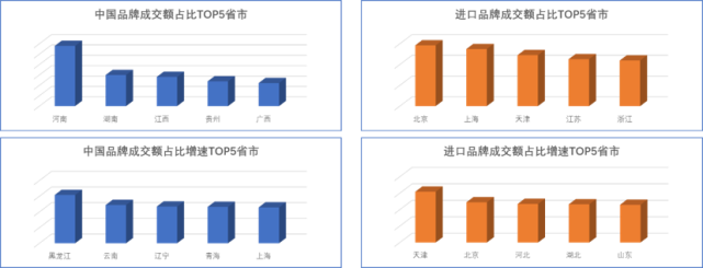 2019年京东等平台通过更加丰富的模式继续助力中国品牌在下沉市场的拓展,下沉市场中国品牌成交额同比增幅较大,同时随着更多高端用户对国品认知度、信赖度的大幅提升,一线市场也取得了较高增长。报告显示,一线市场正悄然变化,上海地区消费者越来越青睐中国品牌商品,而北京地区消费者依然更加关注进口品牌商品。