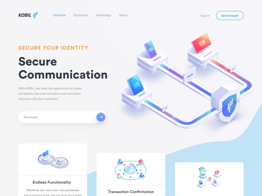 在极简主义的标题设计中,只有网站重要部分的链接和公司 Logo 才会被展示出来。这个技巧在设计着落页时非常有用。