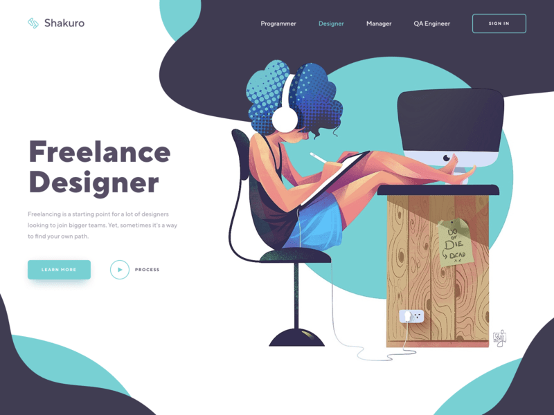 插画——网站的Header图片必须能引起读者的共鸣,建立起人与人之间的联系。如果图片是独特的且易于辨认,即使是从网站标题中剪切出来,效果也会很好,可以利用当今的插图潮流来实现这一点。