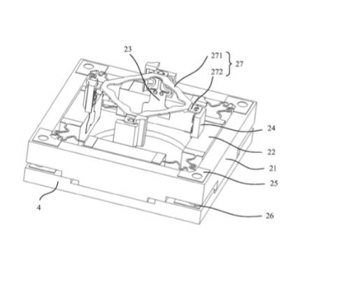 专利称,本申请提供了一种驱动液态镜头的马达组件、摄像头模组和电子设备。该马达组件包括定子部分;动子部分,该动子部分相对于该定子部分可沿光轴方向运动;连接弹片,分别连接液态镜头和该动子部分,该动子部分在光轴方向受到作用力时带动该连接弹片挤压或拉扯该液态镜头;限位部件,该限位部件随该动子部分一同运动且与该动子部分具有相同位移量,用于限定该连接弹片在光轴方向.上的高度变化范围。上述技术方案能够使用于驱动液态镜头的马达满足自动对焦和/或光学防抖等性能要求,同时提高马达在撞击、跌落等非正常工作情况下的可靠性。