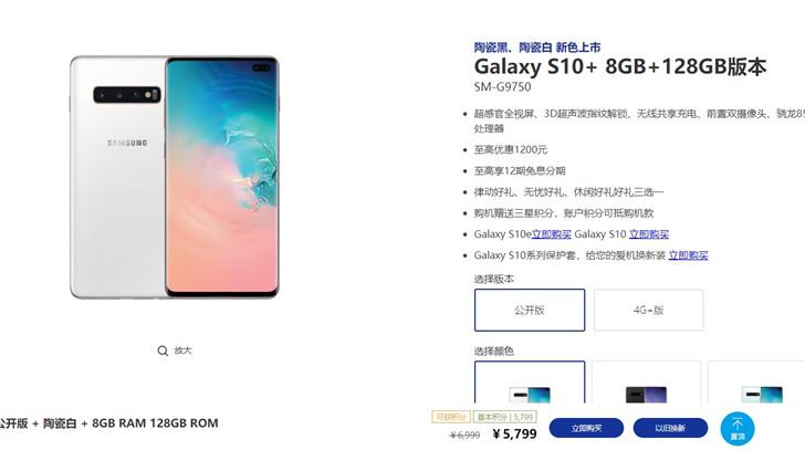 原标题:不再顶配专属!8+128GB三星S10+陶瓷版上架:售价5799元