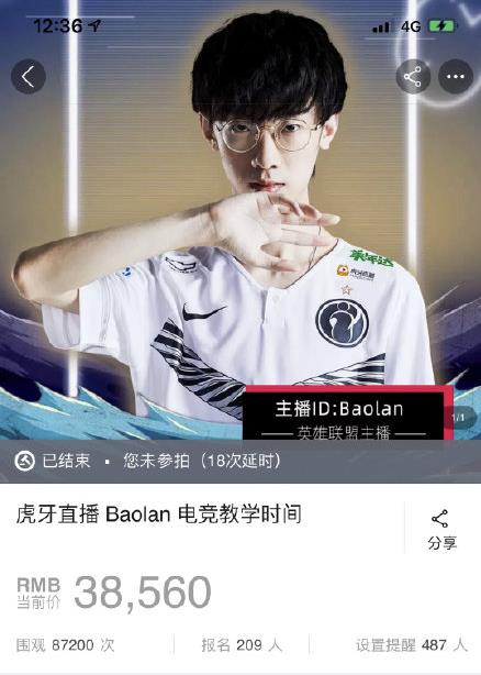 TheShy以4.27万元的价格成交,宝蓝的价格经过数次延长后,最终以38560元的价格成交。