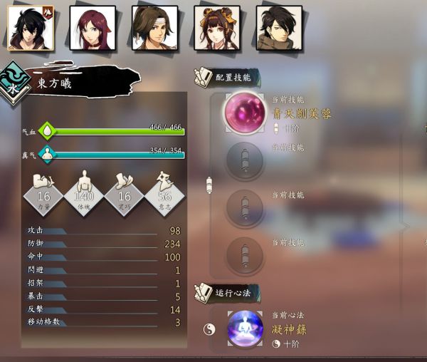主角的属性已经爆炸了,5%回血葫芦加天海攻,只要不是被连续2刀暴击,基本死不了,输出就靠一手五行克制的牛下九坎,和大量反击,基本南哥旁边OB 打援护就能无脑过剑鬼。(这周目用了8回合)