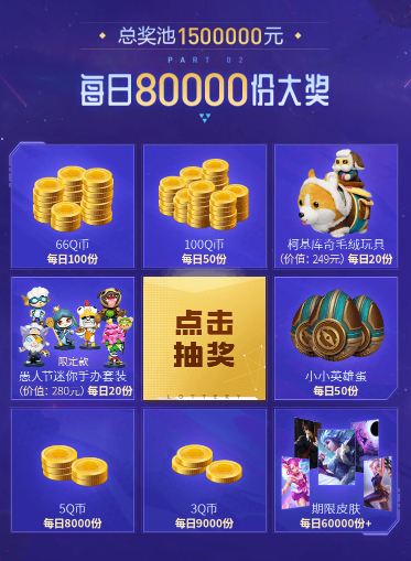 以上三种组合方式均可以获得10积分,而10积分就可以兑换当日押注票。只要竞猜成功,就能参与抽奖。根据小编获得的情报,活动期间每天都有8万份大奖,奖品包括游戏周边、小小英雄蛋、不定额Q币和期限皮肤等多种形式,总奖池价值高达150万元。以目前的参与人数来看,只要打开掌盟、参与互动、猜对结果,中奖率可达100%。而且活动期间,只要每天都完成任务获得积分,每天都有机会参与抽奖。