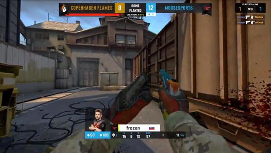 Mouz的经济被摧毁,第二十一回合,eco的Mouz再次被双子星带飞,Cph进攻A区,ropz先用deagle双杀,frozen再从链接摸出用fn57完成了一个高难度1V3并成功拆包,比分来到8-13。