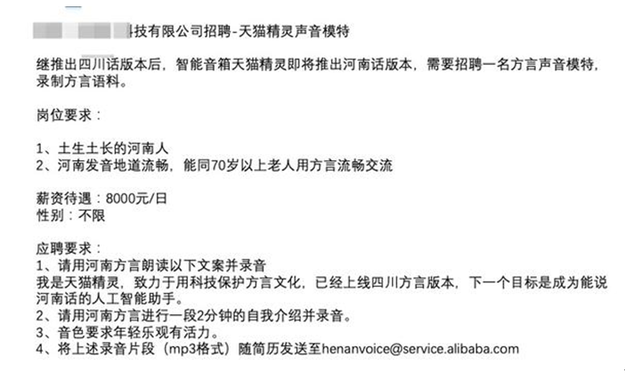 此外,随着大数据、人工智能等技术对各行各业的改造日益深刻,相关岗位越来越注重跨界融合的能力。例如,声音分析是天猫精灵做声学设计和开发团队的一项工作,为了让用户拥有完美的收听和交互体验,团队六人全部是国际音频学会AES的会员,且有五人拥有金耳朵证书。