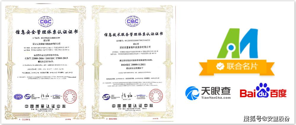 2019年5月,获得信息安全管理体系证书和信息技术服务管理体系证书,通过百度和天眼查联合认证;