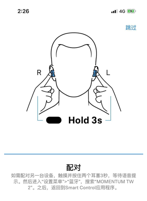 与其他无线耳机蓝牙连接略有不同,通过使用森海塞尔配套Smart Control的APP可以看到,MOMENTUM True Wireless 2需要通过触碰双耳塞3秒,才能弹出配对弹窗,避免了其他用户在配对时误触现象的发生。