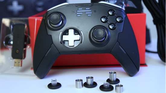 此外,北通宙斯机械手柄还配备了3组可以更换的摇杆,不同的高度带来不同细腻度的操作。使用高摇杆配合上体感摇杆,即使是使用手柄也可以拥有匹配鼠标一般的瞄准体验。