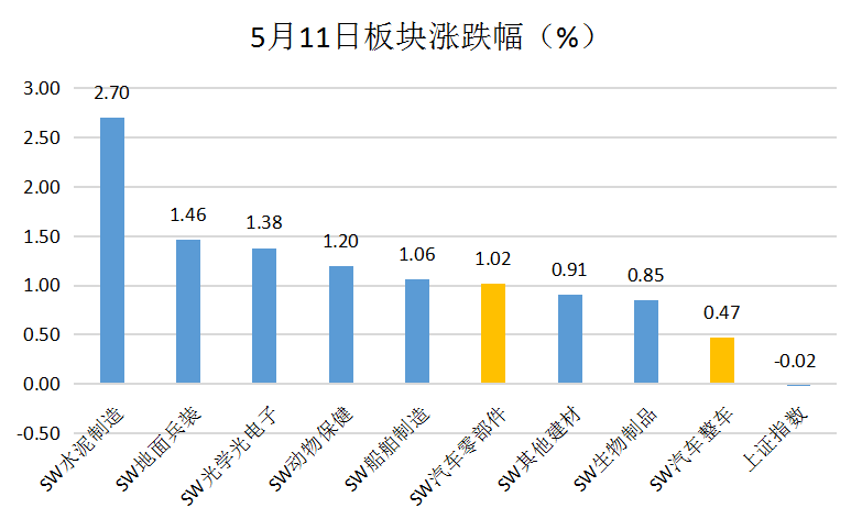 5月11日汽车股表现强势,在大盘收跌之际,汽车零部件板块涨逾1%,汽车整车板块上涨约0.5%,东风科技、亚太股份等个股开盘涨停。